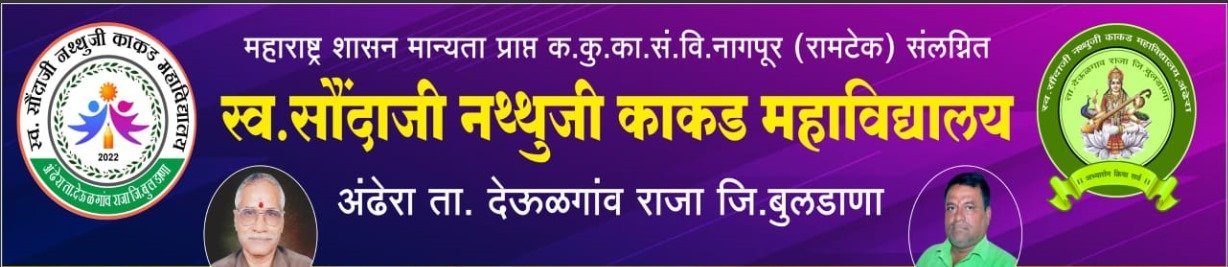 स्व. सौंदाजी नथ्थुजी काकड महाविद्यालय, अंढेरा येथे आपले स्वागत करताना मला अत्यंत आनंद होत आहे. या महाविद्यालयाचा प्राचार्य म्हणून मला आपल्याला ज्ञानाच्या आणि सर्वांगीण विकासाच्या वाटेवर मार्गदर्शन करण्याची संधी मिळत आहे हे माझे भाग्य आहे.